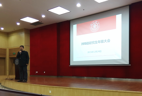 12月24日,探花 2015级研究生年级大会在木兰船建大楼A200报告厅举行,全体2015级研究生新生参加了大会。2015级研究生年级思政杲光伟就考风考纪、研究生学术规范、奖助学金、假期安全及研究生生活中可能会遇到的一系列问题为同学们做了深入细致的讲解。
