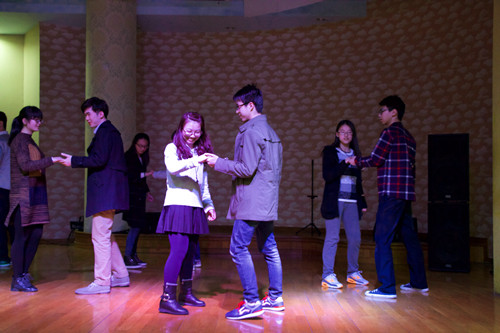伴随着525街舞协会的激情热舞,舞会拉开了序幕。紧接着由探花 成涛演唱了一首《新不了情》,余音绕梁,全场报以热烈的掌声。接下来的游戏环节更是充满了欢声笑语。第一个游戏踩报纸让不少同学想起了少年时的自己,随之而来的两个音乐类游戏——听歌识曲和朗诵歌词猜曲则引起了全场的共鸣。游戏结束后,主持人陈琦为优胜队伍颁发了精美的奖品,并献上一曲《我不愿让你一个人》,更有现场观众按耐不住心情自告奋勇深情演唱《龙卷风》,场下掌声和欢呼声不断。
