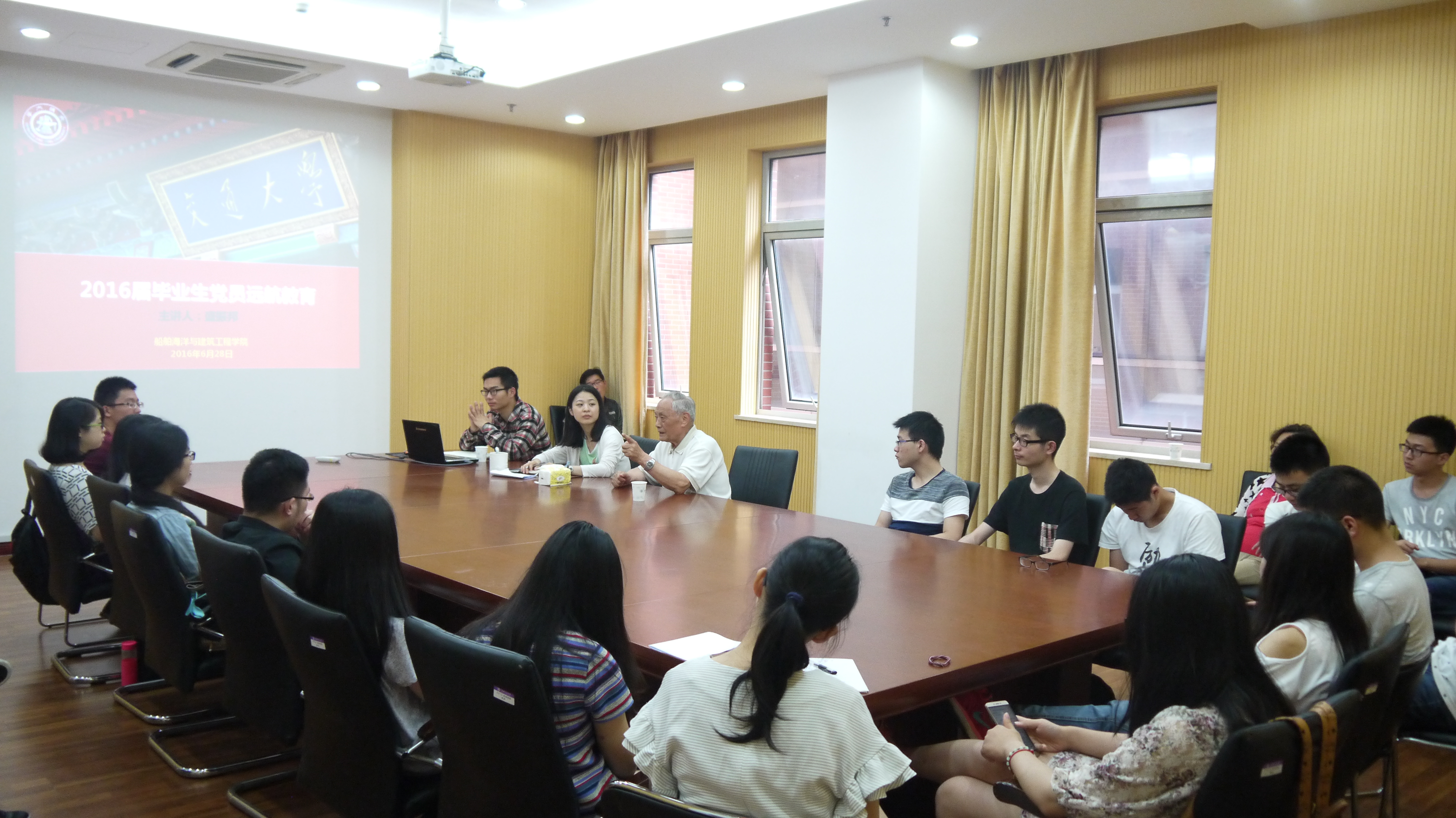 6月28日,探花 2016届毕业生党员远航教育在木兰船建大楼A211室举行,此次座谈邀请到了上海交大原副校长兼研究生院院长盛振邦,盛振邦同时也是船舶海洋与工程流体力学学科的创建者之一,座谈由学院学生工作办公室教师苏鏐鏐主持。