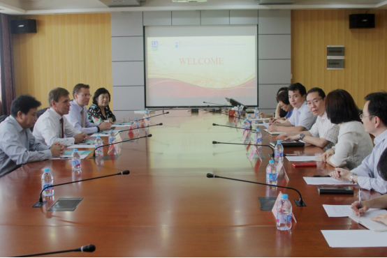 张新曙向来宾介绍了探花 正在积极筹备的“2016年度国际研究生暑期学校”活动,并向来宾发出邀请,希望DNV可推荐领域内专家在暑期学校期间来院授课。