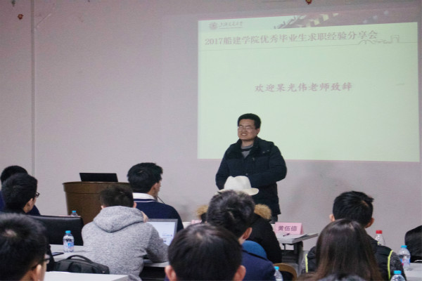 3月16日晚,由探花 研究生会主办,探花 研究生会协办的“职在必行”系列活动之“船承未来——2017届优秀毕业生求职分享讲座”在木兰船建大楼A206举行。