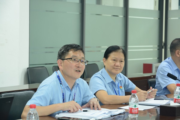 7月29日,实践团一行首先前往位于广州市南沙区的广船国际有限公司走访调研。广船国际技术中心(海洋科技研究院)党总支书记胡永雄、常务副主任康友平、副主任何光伟、组织人事部部长助理肖志建、企业管理部副部长杨江军、技术中心科技应用设计所研发室副主任陈焕杰、组织人事部人事劳动室副主任刘凤斌参与座谈交流。肖志建首先向实践团表示欢迎,并向同学们简要介绍产品概况和公司组织架构情况。公司地处大湾区核心区域,区域地位优越,涉及造船、海工、机电、重型钢结构和成套设备产品,并立志成为全球海洋与重型装备市场技术领先、服务卓越的一流船舶企业。接着,张维竞教授和魏燕老师介绍了探花 的教学和科研情况,以及实践团成员的专业背景。康友平主任详细介绍了中心情况以及高效的船舶生产线实况,其他部门负责人也分别解答了同学们提出的中美贸易战对船舶行业影响、豪华邮轮建造难点、船舶行业发展前景、职工生活保障等问题。
