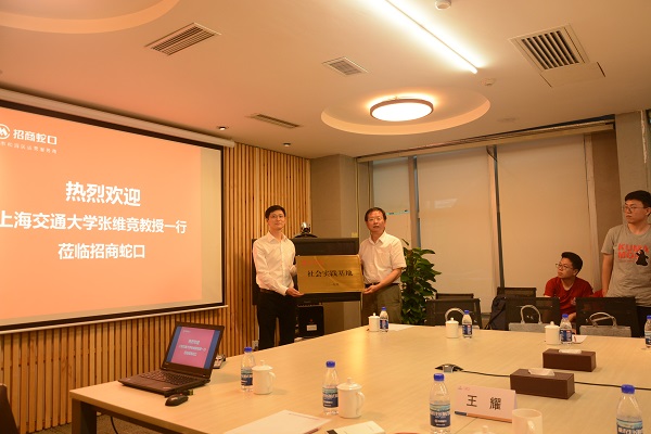随后,实践团来到招商蛇口公司,招商蛇口人才管理总监陈林,华东区域行政与人力资源总监兼上海公司副总经理林炳曦、人力资源经理陈鑫、人力资源经理杨兆宇与探花 实践团座谈交流。陈林总监代表公司对探花 实践团的到来表示热烈欢迎,杨兆宇经理和陈鑫经理分别就招商局的辉煌历史和公司组织体系向实践团进行了充分讲解。张维竞教授向招商蛇口公司表达了感谢,并介绍了学校和学院的基本情况和学生培养体系,代表学校向招商蛇口授牌“社会实践基地”。林炳曦经理及其他公司领导一起与学生进行座谈交流,并希望能够通过校园俱乐部促进交大学子对招商蛇口的了解。