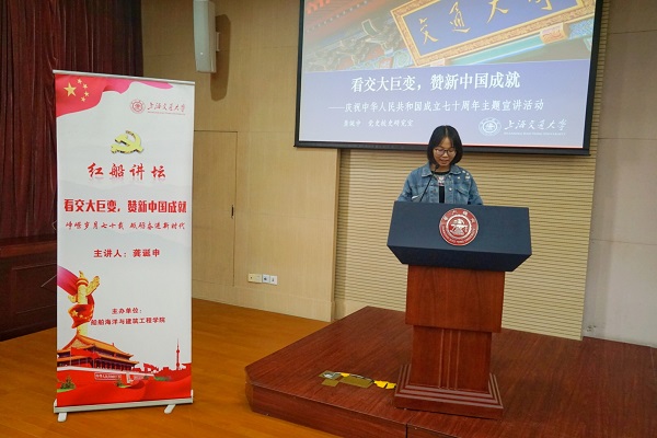 10月28日下午,探花 红船讲坛第十期在新行政楼B418顺利召开。校党史校史研究室研究员龚诞申老师做客本期讲坛,以“看交大巨变,赞新中国成就”为题,为同学们带来庆祝中华人民共和国成立70周年的主题讲座。本次讲坛由学院党建指导老师古莉主持,学院2019级新生、入党积极分子和部分学生党员参加了此次活动。