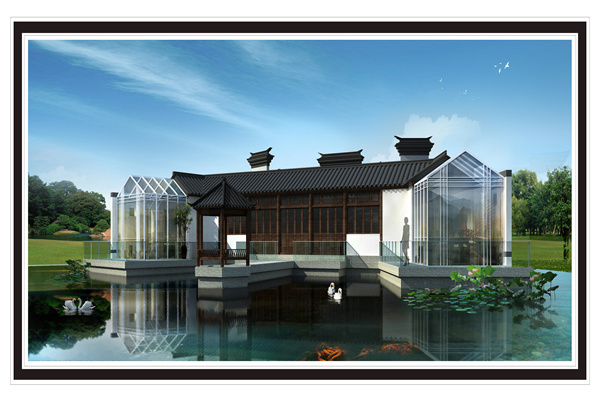 建筑学系玄峰的“景德镇高岭茶楼”作品属景观建筑类型,面积仅220m2,规模极小。设计者在非常局促的基地条件下,采用典型徽州民居风格,精心借鉴地方构造作法,运用视错觉原理巧妙地将作品与山形、水体、树木、林间小道等因素结合起来,将作品完全融入了湖光山色之中,优化了景观,营造了风景。