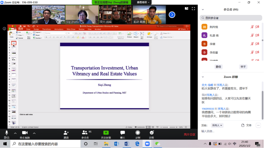 远在美国的MIT郑思齐教授通过ZOOM平台作学术讲座